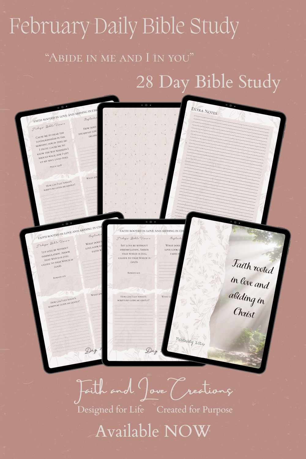 Deepen your walk and devote time to your Creator; the One who knows you and makes you whole. Slow down, reflect and build a love abiding in Christ.